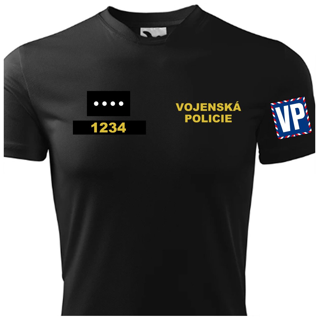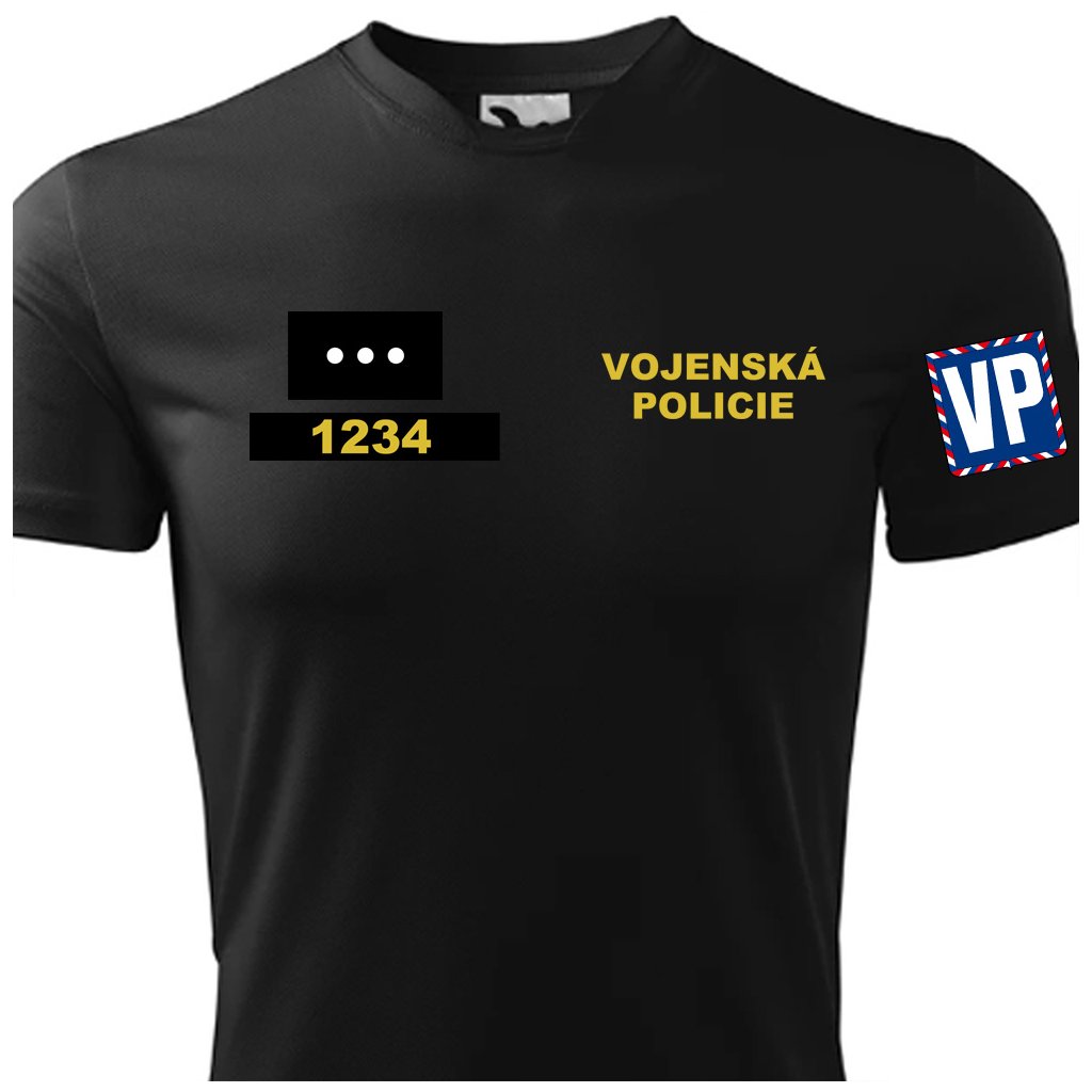 Polyesterové tričko o gramáži 150g/m2 + na zadní straně nápis VOJENSKÁ POLICIE