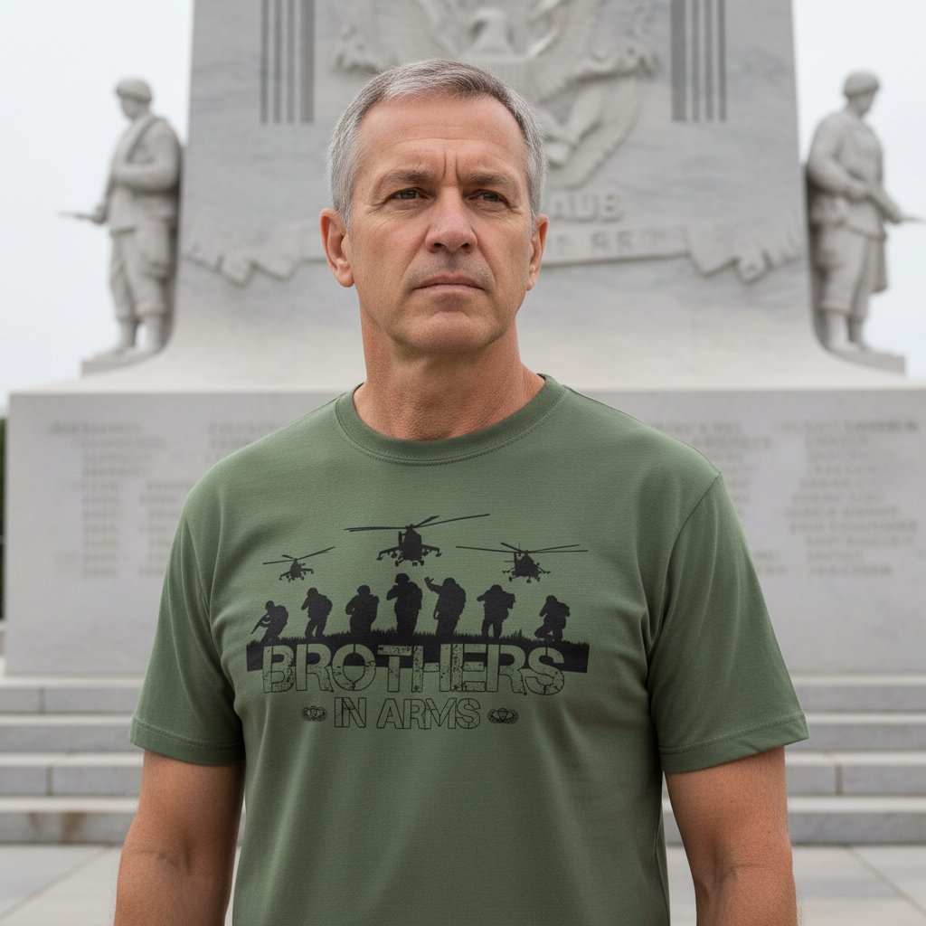 Černé bavlněné tričko o gramáži 160g/m2 s vypracovaným originálním motivem BEROTHERS IN ARMS. Tričko pro akční nadšence, ale i pro milovníky retro motivů.